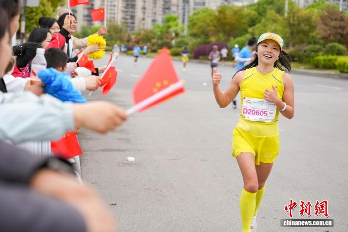 4月12日,歉配友正在角逐中。吴浩宇 摄